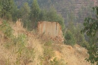 Een vrouw met een kind op haar rug, loopt ondertussen met ons mee. Ze bekijkt ons met vrolijk nieuwsgierige ogen maar zegt tijdens het hele bezoek geen woord. Een andere man voegt zich bij ons. Hij vertelt over zijn zoon die nog steeds gevangen zit, omdat hij compensatie wilde voor zijn huis. Hij had geen geld. Waar moest hij naar toe?