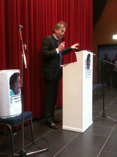 Zo'n 150 Nederlanders en Rwandezen uit Nederland, Belgie en Duitsland bezochten eerst een mis in de Victorkerk in Waddinxveen. Daarna werd in Zevenhuizen door verschillende sprekers teruggekeken op de activiteiten van Victoire en de FDU in Rwanda. Onder andere de familieadvocaat Jan Hofdijk, en de voorzitter van de vrienden van Victoire kwamen aan het woord. Ook ik had een bijdrage.