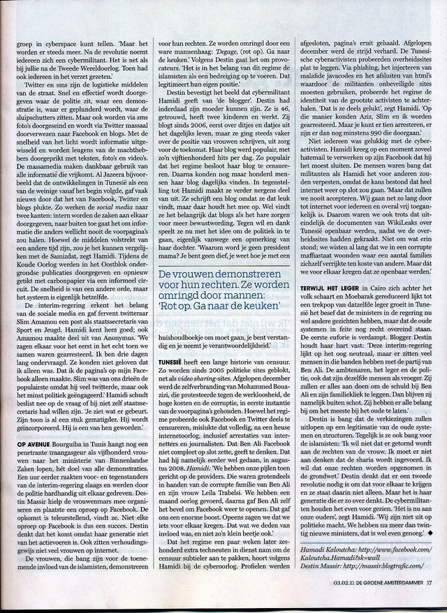 Dictator dumpen in 140 tekens, pag 2, Groene Amsterdammer, 3 feb 2011